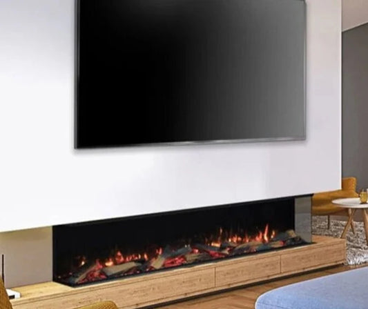 Breng nog meer sfeer in huis met een driezijdige haard, ook wel panoramahaard genoemd. Deze haard is volledig elektrisch en beschikt over drie zijden glas voor een optimaal zicht op het vuur. Dankzij het panoramische glas van driezijdige haarden bewonder je de dansende vlammen uit verschillende hoeken en geniet je van maximale warmte en gezelligheid.
