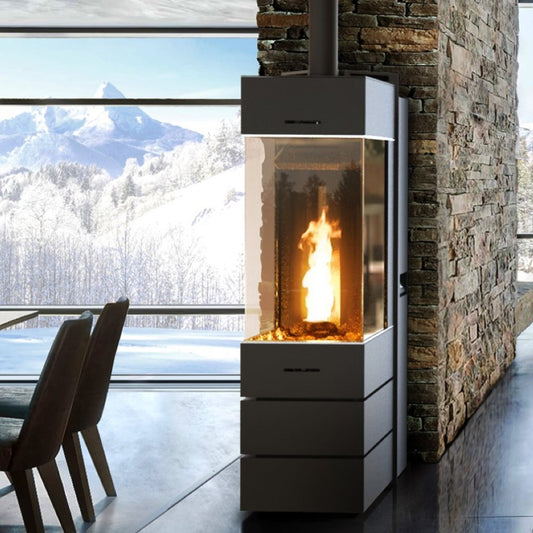 Dankzij het panoramische glas van driezijdige haarden bewonder je de dansende vlammen uit drie verschillende hoeken. Deze haard is elektrisch en biedt zowel warmte als sfeer. Je bepaalt zelf of je de haard met of zonder verwarming gebruikt. Perfect voor zowel een romantische zomeravond als tijdens koude winternachten.