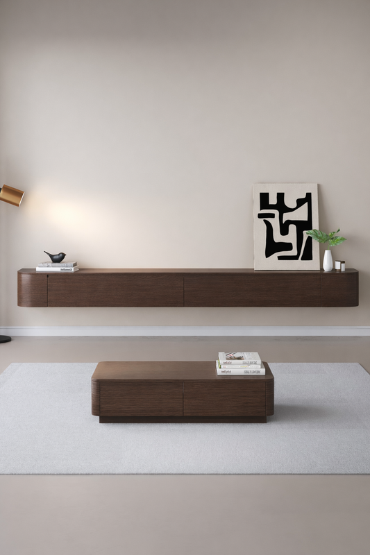 Chic Curve Ronde TV Meubel 180 cm – Zwevend – Japandi Beige