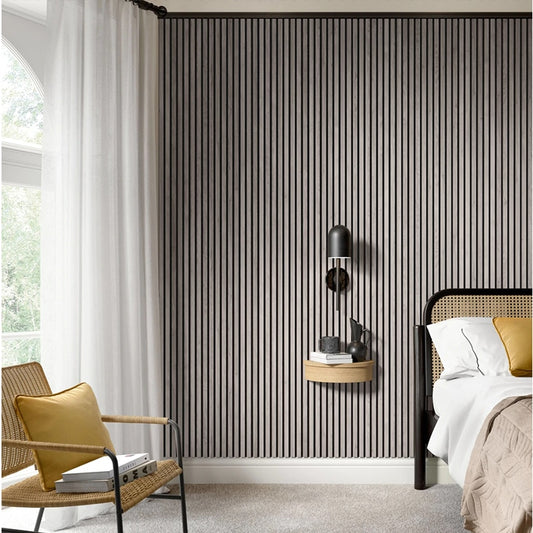 Combineer schoonheid met functionaliteit met onze akoestische houten wandpanelen. Perfect voor het verbeteren van de akoestiek in elke kamer, terwijl het een warme, natuurlijke look biedt.