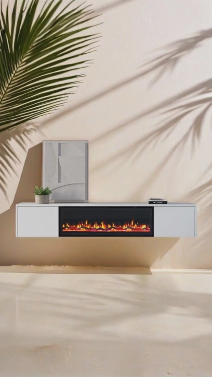 Maak van je woonkamer een oase van rust en elegantie met het Chic TV Meubel met elektrische sfeerhaard in Pure White. Dit royale tv-meubel van 280 cm combineert een moderne uitstraling met praktische opbergruimte en een realistische sfeerhaard — voor een warm en stijlvol interieur.