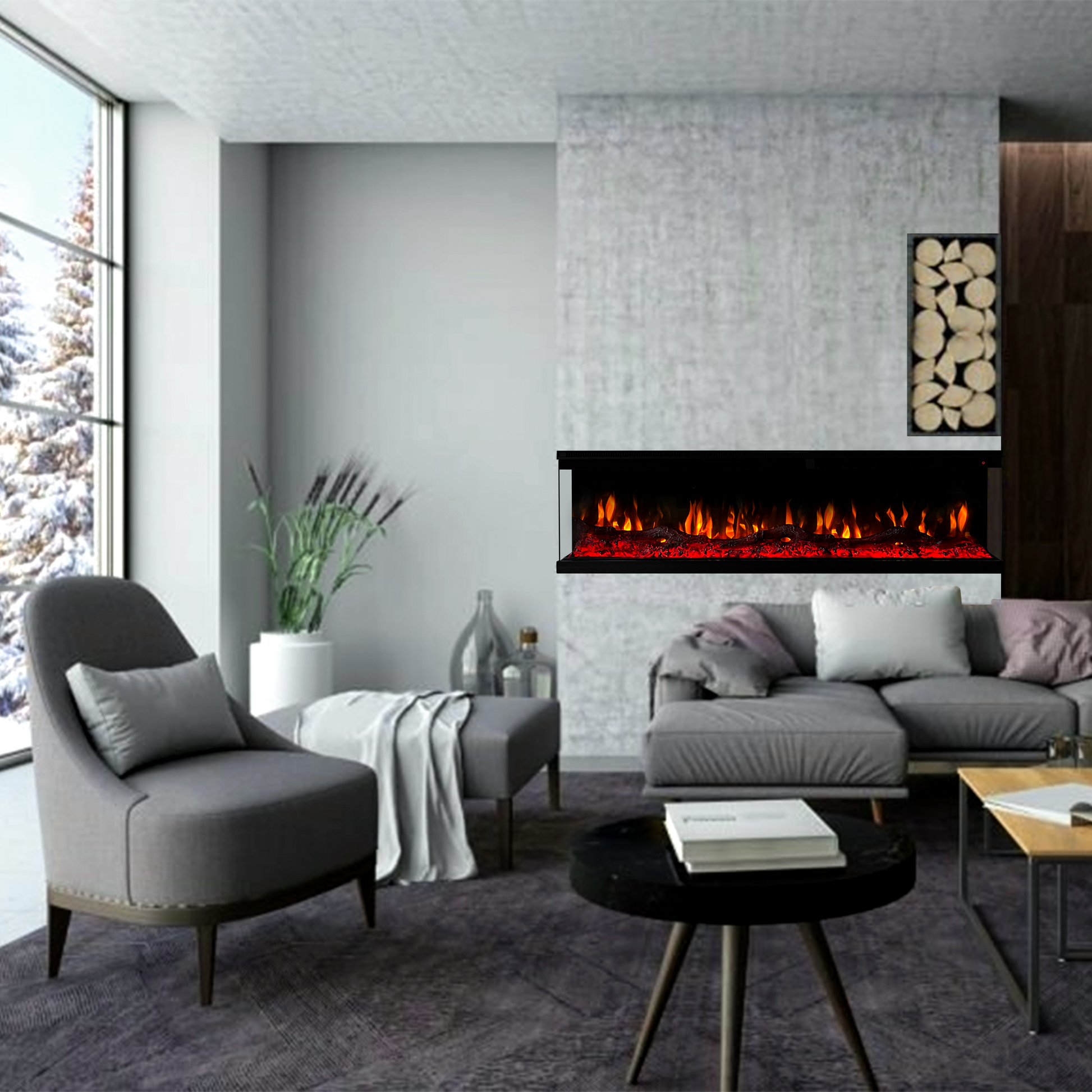 Deze prachtige driezijdige elektrische haard van het merk Mazar 3D tovert een romantische en sfeervolle atmosfeer in uw woning, kantoor of restaurant. Deze haard is uitermate geschikt voor een cinewall, schouw of een wandmeubel en werkt met en zonder verwarming. Door het 3D aanzicht met breed en hoog panoramisch glas is het opmerkelijke vlammeneffect vanuit elke hoek te bewonderen. Binnen minuten wordt een gemoedelijke, ontspannen omgeving gecreëerd.